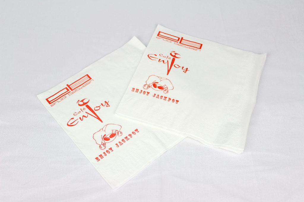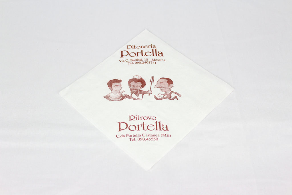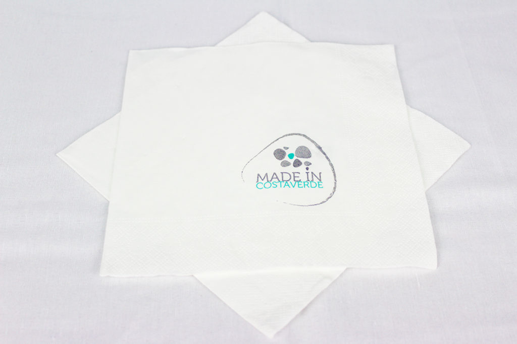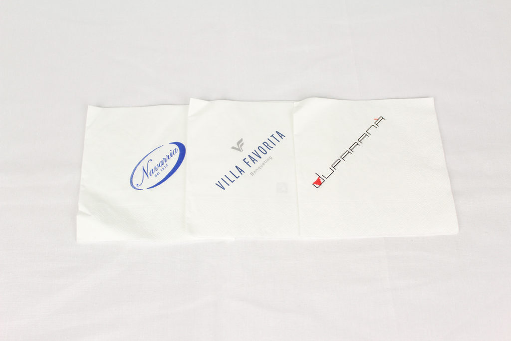 Sul tovagliolo, con colore di fondo bianco o avana, è possibile scegliere di stampare il logo ad uno e due colori.