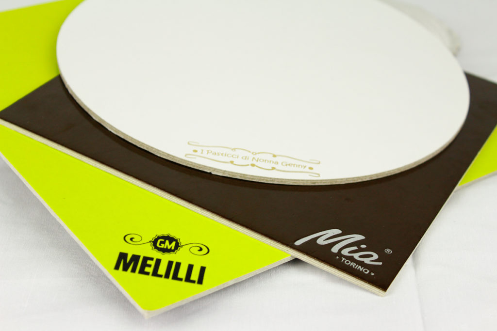 I dischi e le tavolette porta torta sono offerti in diverse misure ed in diversi colori e con differenti possibilità di stampa.